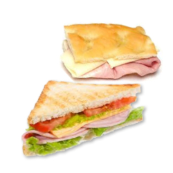 Tramezzini singoli e tramezzini doppi, panini, focacce e pizza, tutti prodotti in atmosfera protetta (ATM).